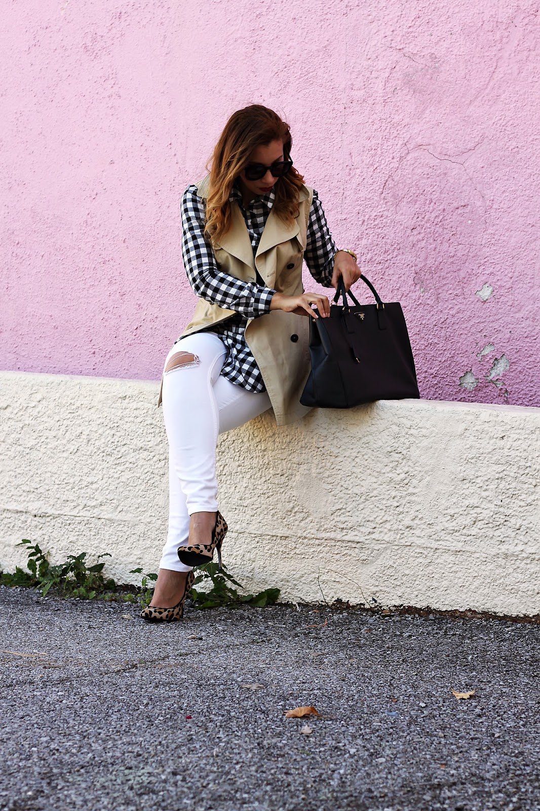 Shirt-Dress: Forever21 // Bag: Prada / Prada Mini (Similar HERE) // Jeans: HERE/HERE // Trench: (Similar HERE/HERE/HERE) // Shoes: (HERE/HERE/HERE) // Earrings: Kendra Scott // Watch: Michael Kors // Bracelet: Loren Hope // Sunglasses: Karen Walker (under $8 HERE) // Ring: HERE